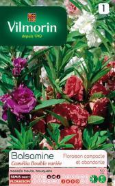 A compact plant with abundant double flowers on a stem, somehow similar to Camellia flowers.